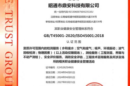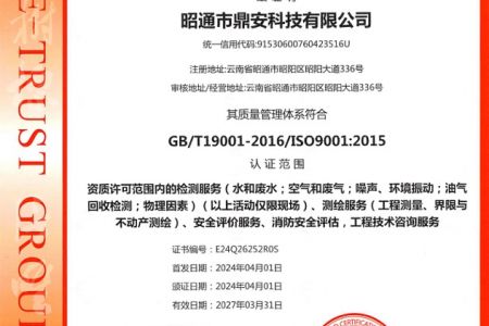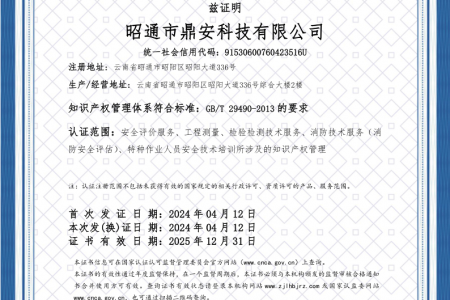 2003年11月10日,昭通市鼎安科技有限公司成立,初始主要從事第三方安全工程技術(shù)服務(wù),經(jīng)多年運(yùn)營,發(fā)展為多專業(yè)綜合科技平臺(tái),為社會(huì)提供多種專業(yè)技術(shù)服務(wù)工作。 現(xiàn)公司注冊資金為1200萬元,公司法定代表人:毛衛(wèi)旭。公司主要業(yè)務(wù):安全評(píng)價(jià)、安全標(biāo)準(zhǔn)化評(píng)審、安全工程技術(shù)服務(wù);環(huán)境監(jiān)測、職業(yè)衛(wèi)生檢測、檢驗(yàn);法律訴訟及非訴訟服務(wù);司法鑒定、固定資產(chǎn)投資項(xiàng)目節(jié)能服務(wù);工程咨詢;工程測量測繪;安全教育培訓(xùn)等。是安全生產(chǎn)服務(wù)、安全教育培訓(xùn)機(jī)構(gòu),也是環(huán)境監(jiān)測和職業(yè)衛(wèi)生服務(wù)機(jī)構(gòu),同時(shí)也是綜合的檢測檢驗(yàn)、綜合科技平臺(tái)服務(wù)機(jī)構(gòu)。多年來為公、檢、法、司、軍、警、海關(guān)、仲裁、安監(jiān)、工礦商貿(mào)企業(yè)、社會(huì)團(tuán)體及個(gè)人提供多專業(yè)技術(shù)服務(wù)。